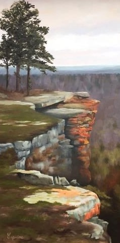 My studio is in Arkansas, on Petit Jean Mountain in Petit Jean State Park. CCC Overlook is my favorite spot on the mountain. The colors of the rocks just glow during sunset. It is a peaceful place where I like to bring my sketchpad. The CCC Overlook is on the bluff of Cedar Creek Canyon. Named for the Civilian Conservation Corps, which built it in the 1930s, this native stone overlook offers views of the Canyon and the Petit Jean River.
