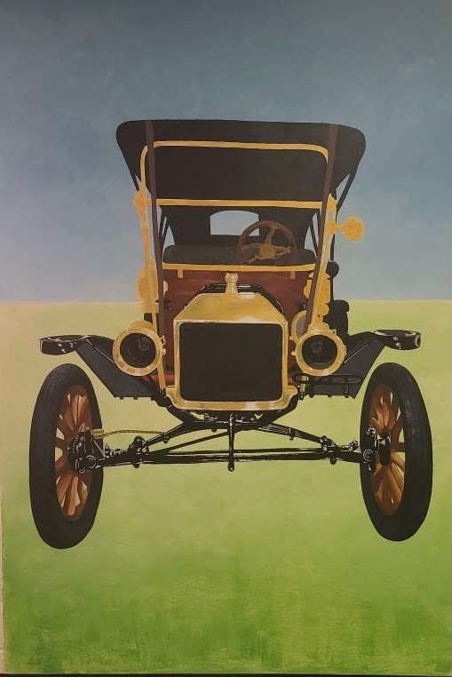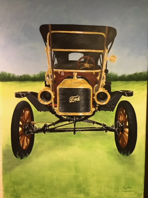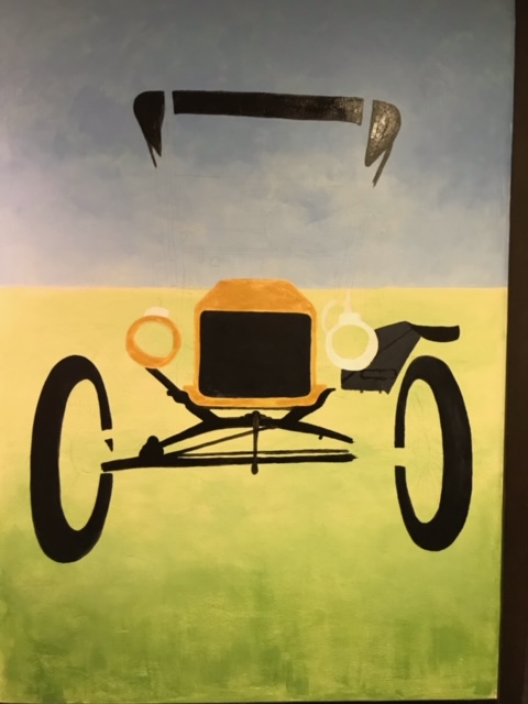 This mural is a 1912 Ford Model T Touring, it is 6′ wide by 8′ high. It is the largest, most complex mural we’ve done to date. It challenged us, we learned a lot, and I could not have done this without my daughter! Art is even more joyful when I can share it with her.