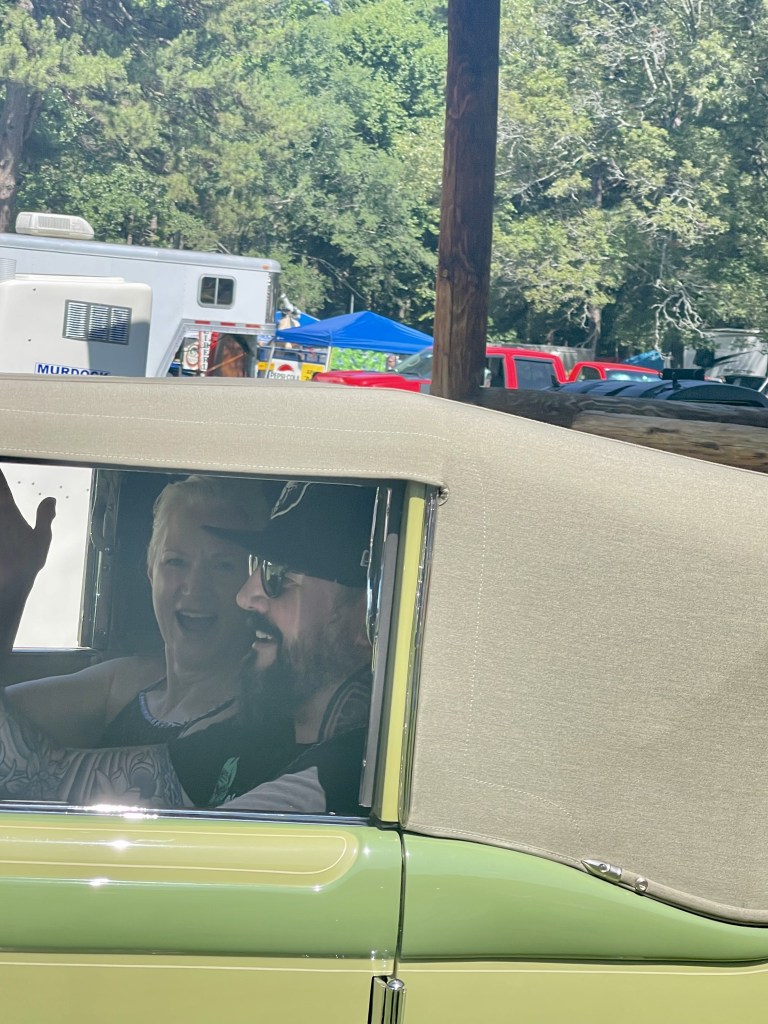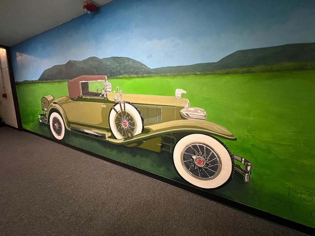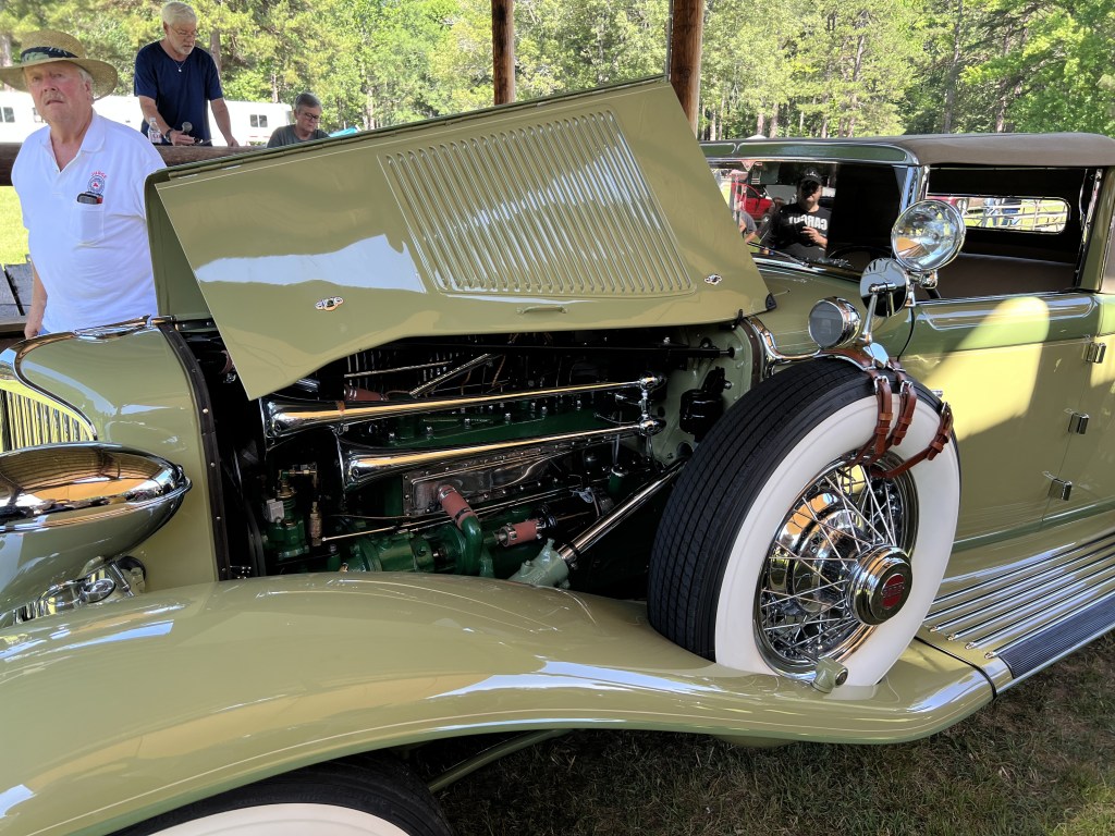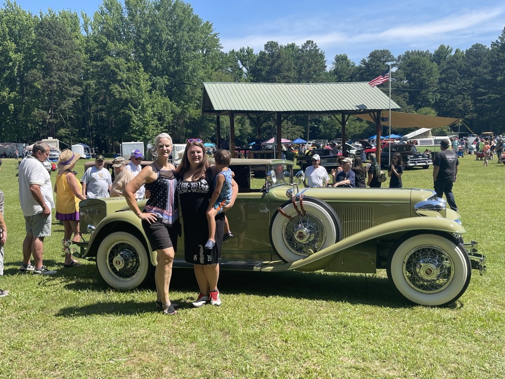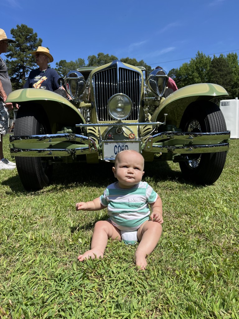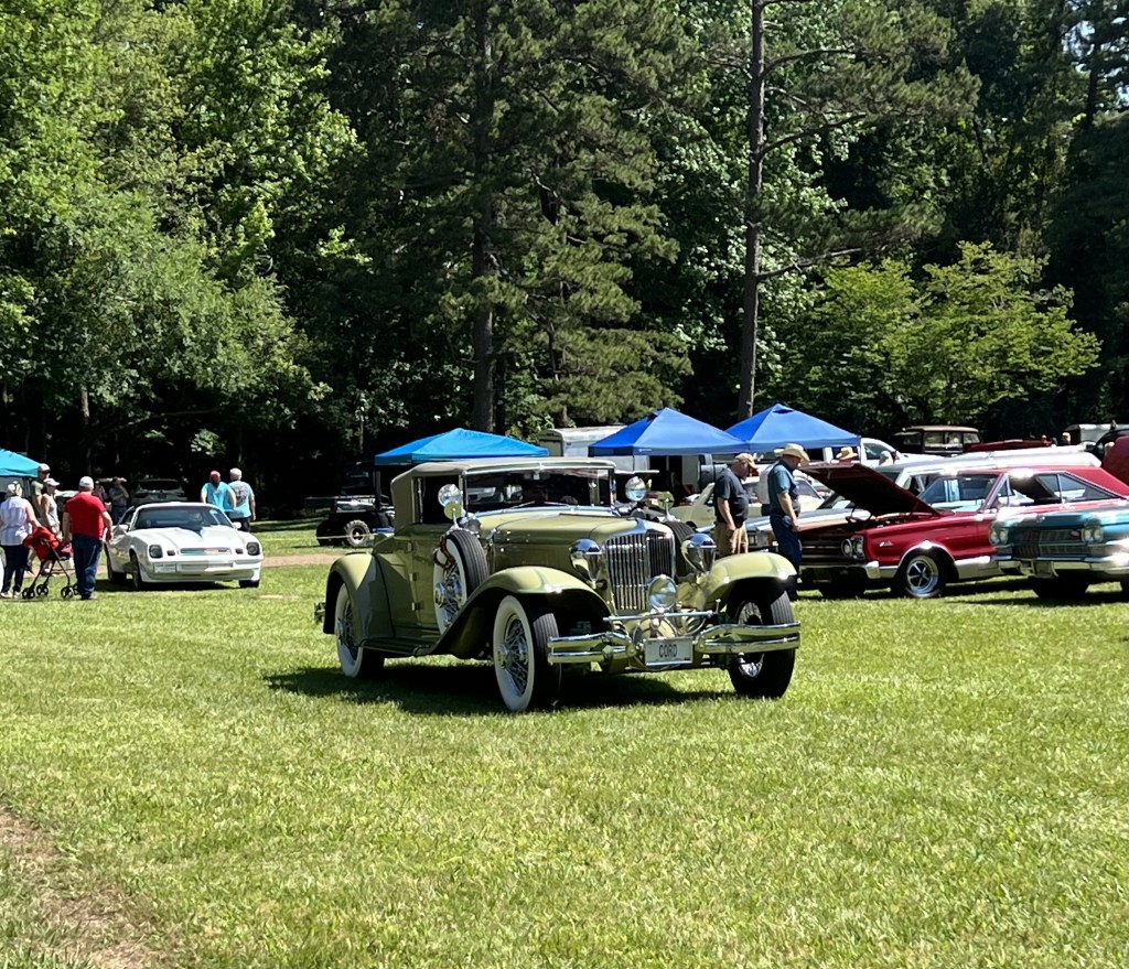 Last week, Evelyn and I completed the 1931 CORD L-29 Cabriolet mural at The Museum of Automobiles on Petit Jean Mountain, AR. Today at the 65th Annual Petit Jean Swap Meet and Car Show, we met up with G.O., the owner of the CORD. It was the first time she had seen the mural in person, talk about being nervous! G.O. absolutely loved the mural and said he couldn’t be more proud. G.O. brought the CORD to the show and as his son was getting ready to pull the car away from the judge’s booth, I was gifted with a ride! As you can see from the video, I was like a kid in the candy store.