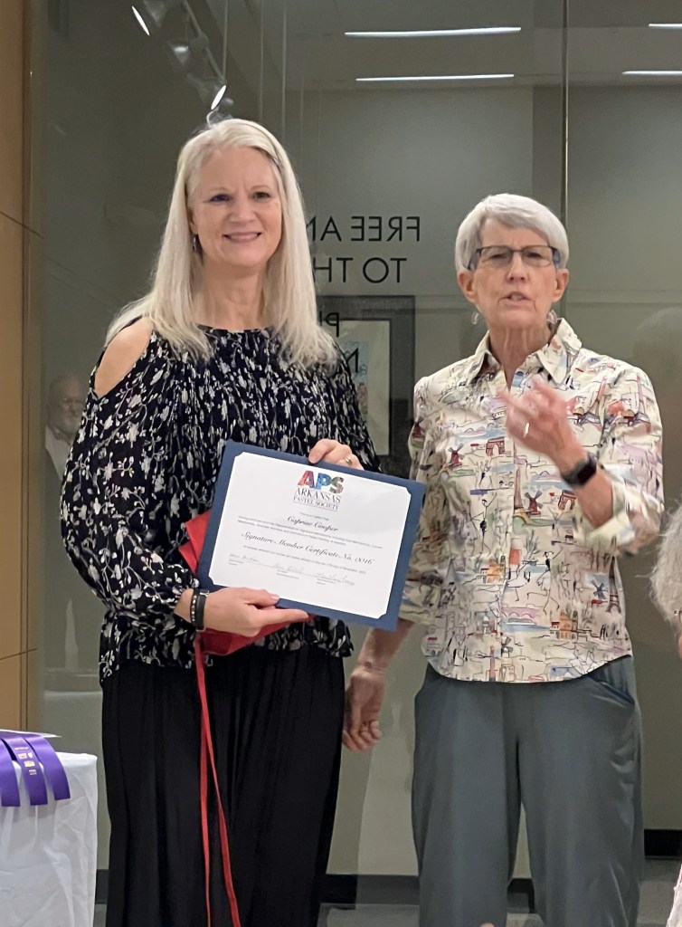 Friday evening was the APS National Show Opening Reception at Laman Library, North Little Rock, AR. I was honored to have my painting “Glisten” accepted into the juried show. The show judge was Tom Christopher.