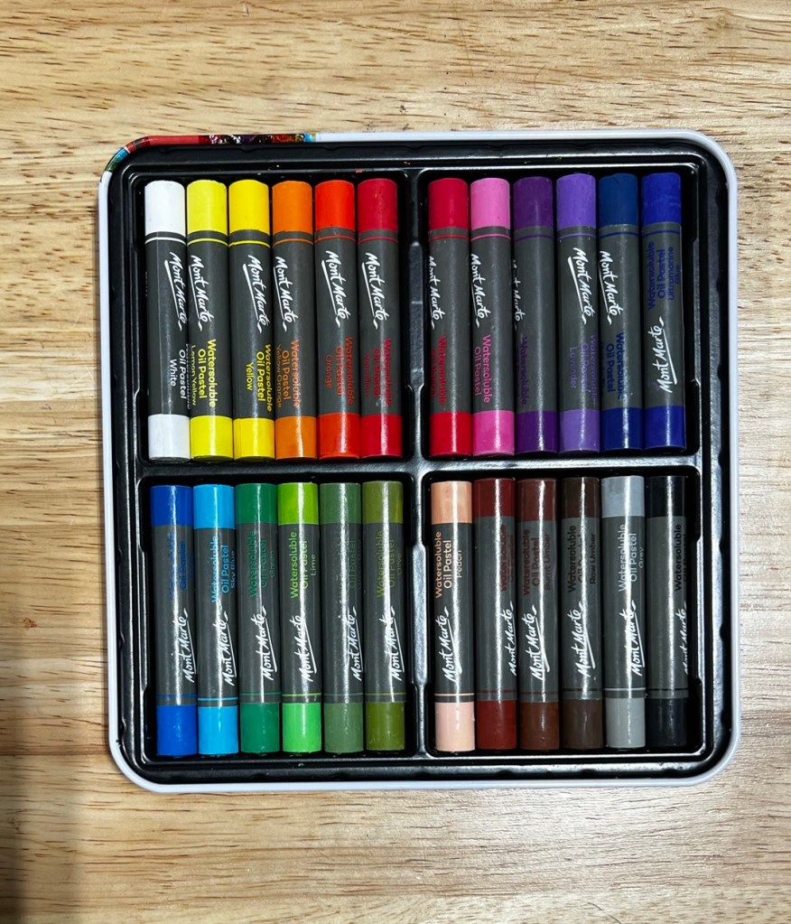 • The colors were vibrant and laid down smoothly, I noticed that the pastels occasionally left small chunks. This could be due to the sanded surface or my unfamiliarity with the pressure needed for even application.