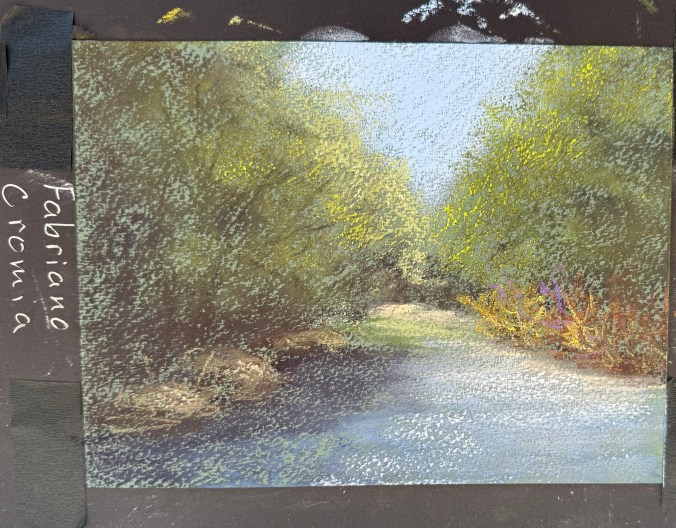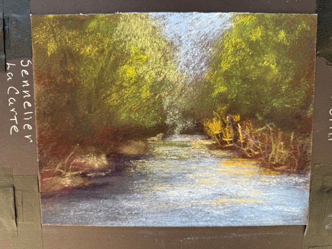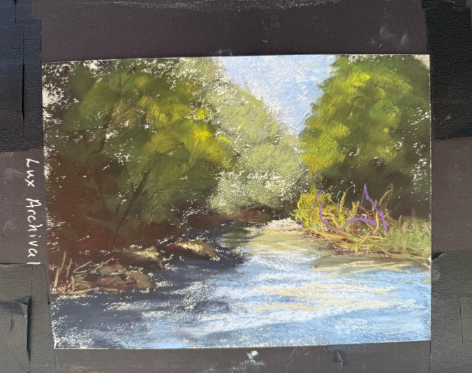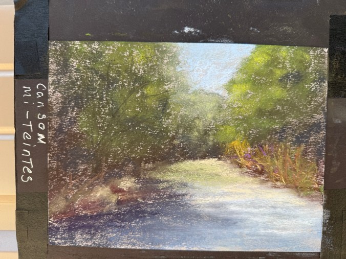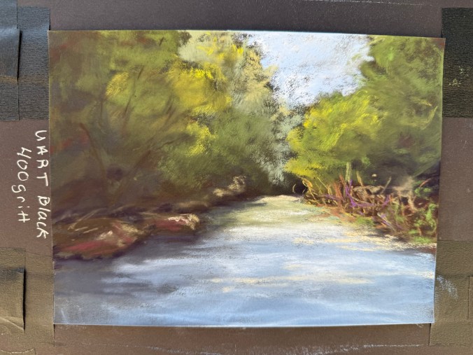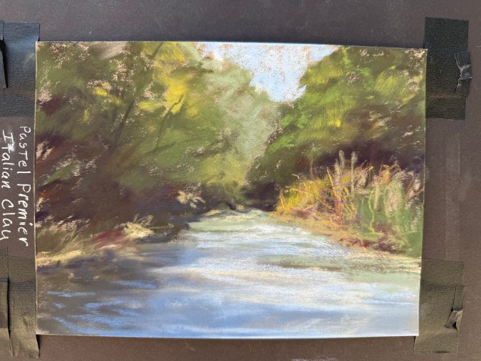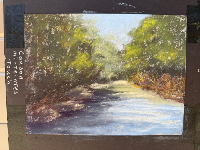While absorbent and soft, it didn’t support my pastel technique well. Even Terry Ludwig’s darkest shades looked faint. When I did some research, this is a printmaking paper, and it doesn’t work well with my style.  Maybe a blended underpainting would solve the issue of the texture showing through.