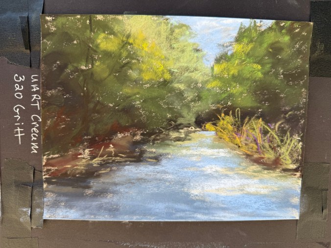 Gritty to the touch but goes on smoother than expected. This is a strong contender for future landscape and rusty vehicle work. It held pastel well and delivered clean layering. I actually have larger sheets of this paper, just haven’t gotten around to using it.