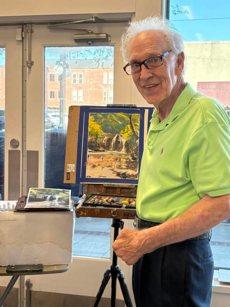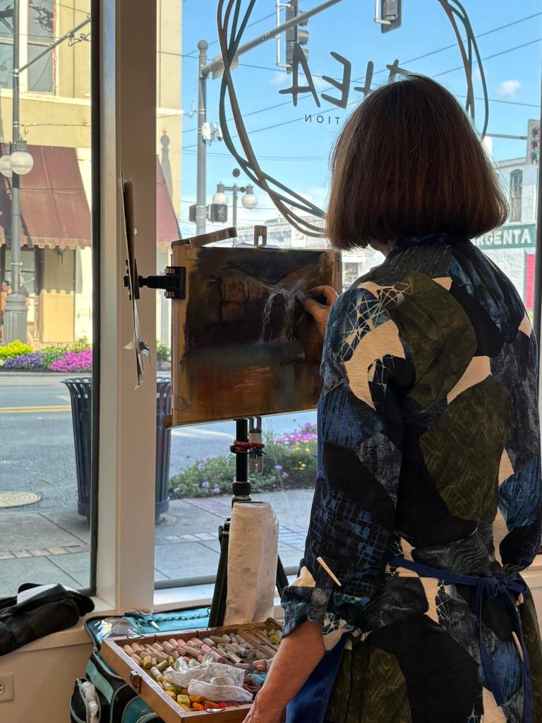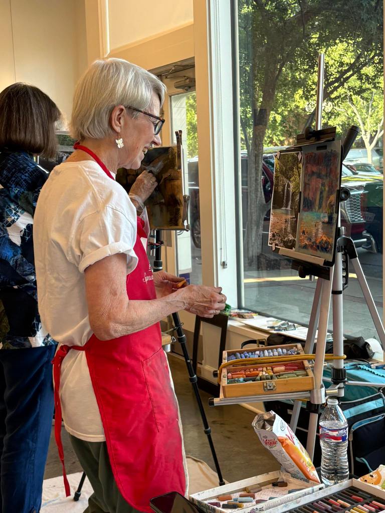 Visitors to the gallery enjoyed more than just the stunning pastel artworks on display. The reception offered an interactive experience, including hands-on pastel display and a silent auction. A dynamic “dueling demos” event, featuring artists Susan Hurst, Clarence Cash, and Debbie Strobel, captivated guests as they watched the creative process unfold in real time.