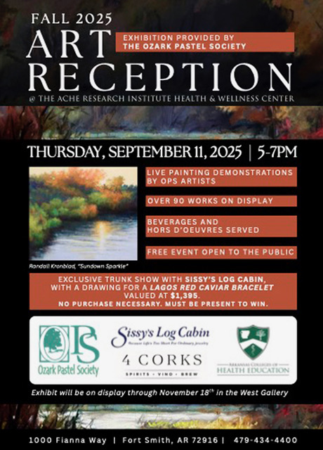 I’m excited to share that I’ll be showing my work at the Arkansas College of Health and Education from September 11 through November 18. This is part of an exhibition by the Ozark Pastel Society.